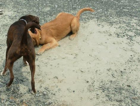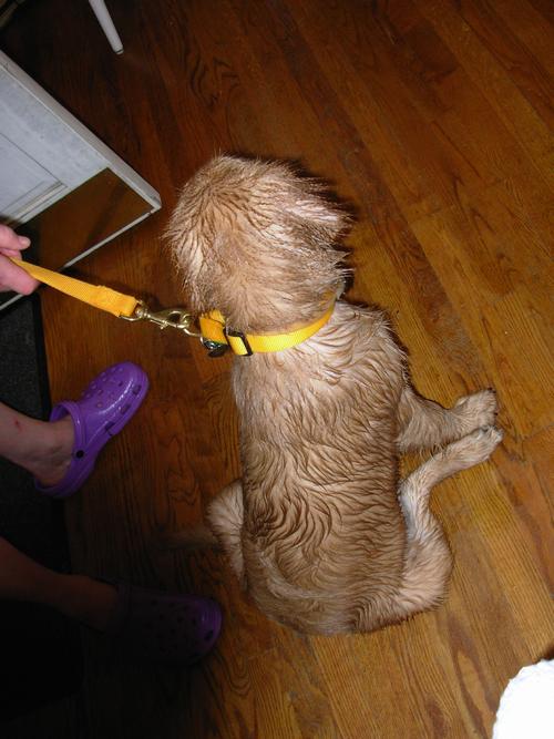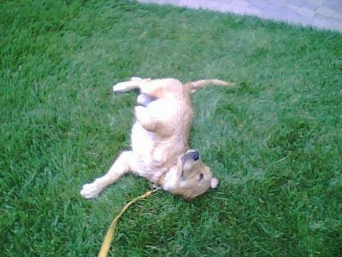 Rainy day, lots of wet lawns to roll in and one large puddle to frolick in!
