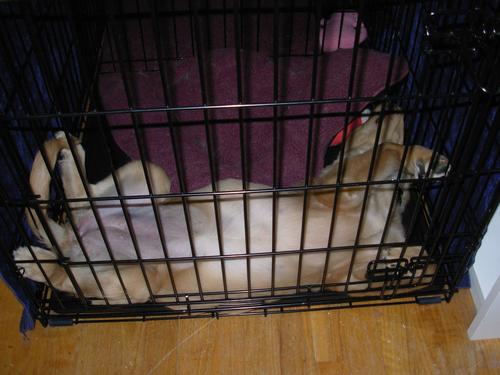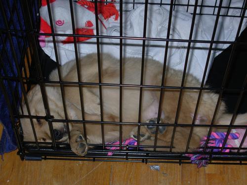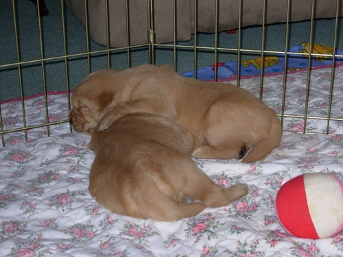 GROWING! Asleep in her crate, 18 April on the left and 31 May on the right