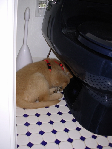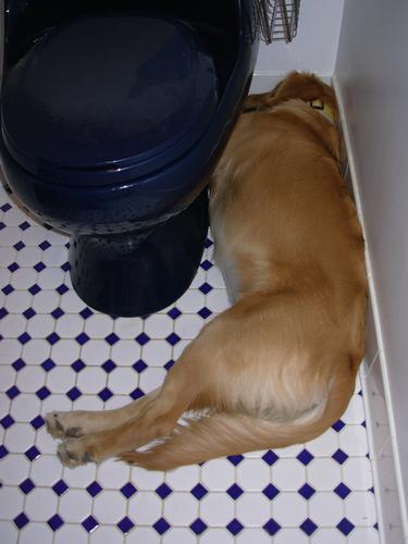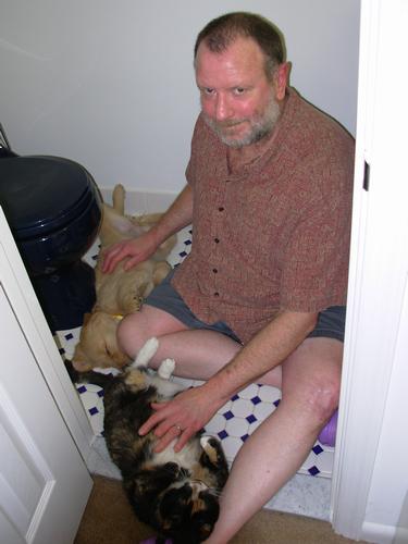 Compare & contrast, sleeping in the bathroom: Left, 19 April 2007 | Right, 20 July 2007