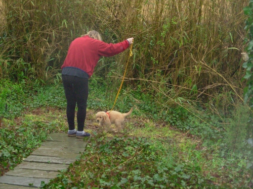 Going to The Potty Place... (it was continuously cold and rainy the first three days at her new home)