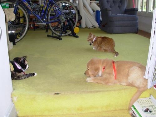 I got Gem & Emma totally mellowed, in close proximity ... ... but 2 minutes later, after Scout made her entrance, they'd all taken up positions....